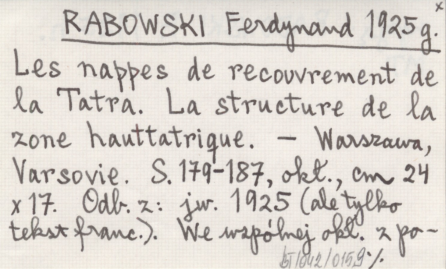RABOWSKI Ferdynand 1925 g Les nappes de recouvrement de la Tatra. La structure de la zone hauttatrique.