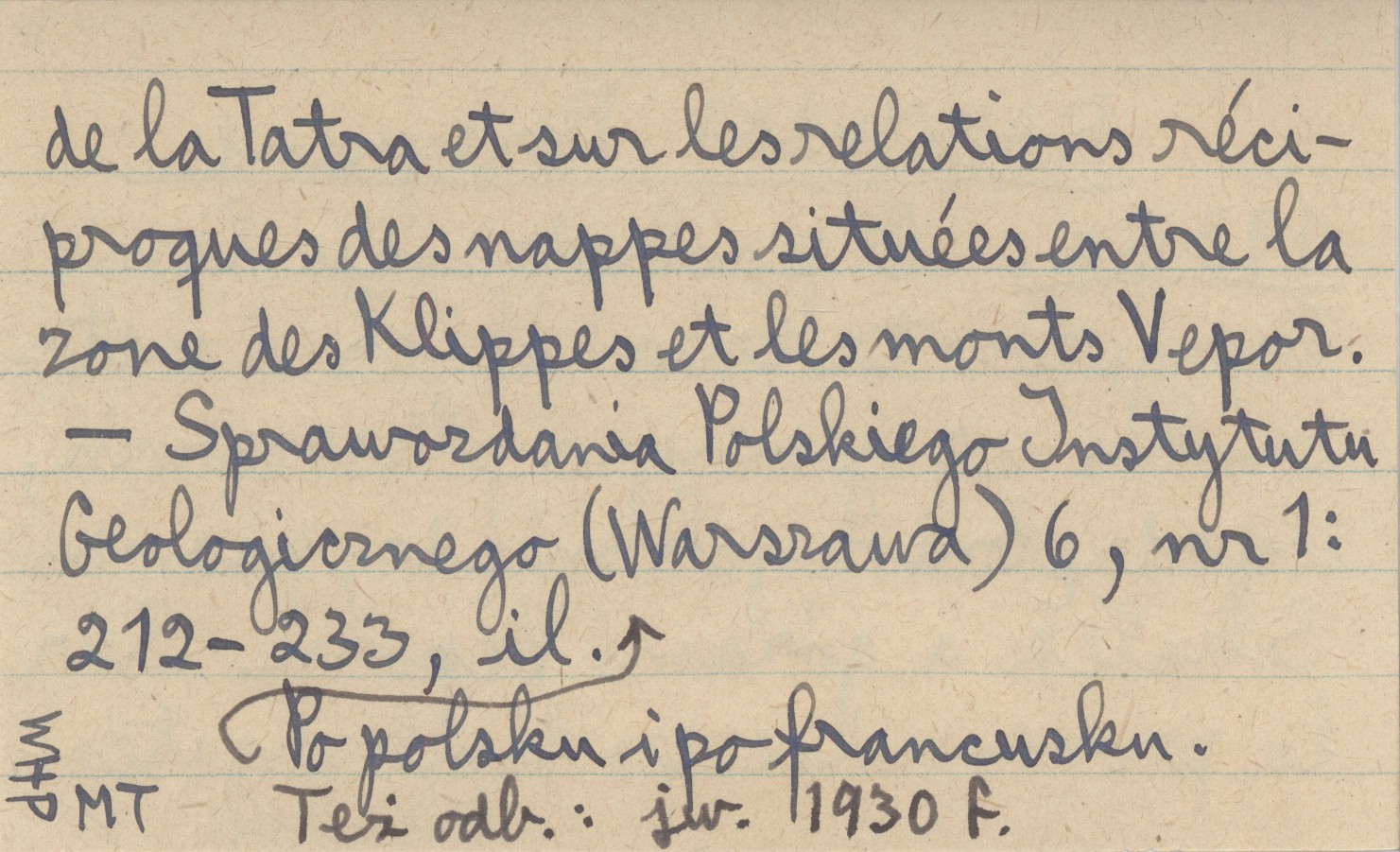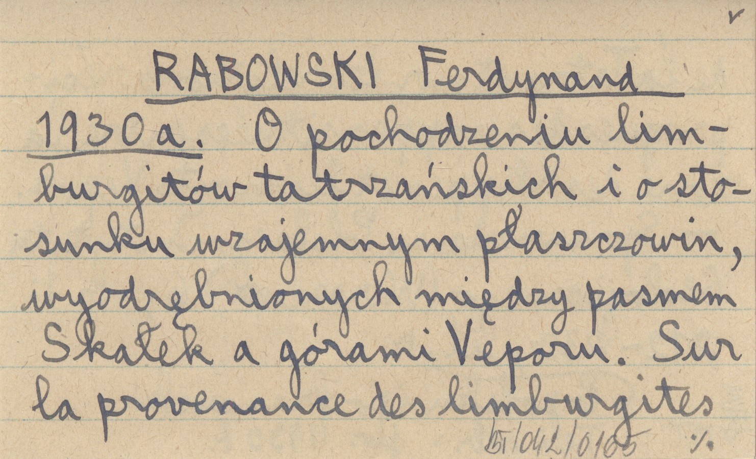 RABOWSKI Ferdynand 1930 a O pochodzeniu limburgitów tatrzańskich i o stosunku wzajemnym płaszczowin, wyodrębnionych między pasmem Skałek a górami Veporu. Sur la provenance des limburgites de la Tatra et sur les relations réciproques des nappes situées entre la zone des Klippes et les monts Vepor.