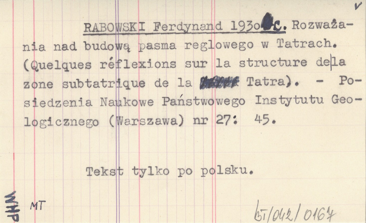 Posiedzenia Naukowe Państwowego Instytutu Geologicznego (Warszawa) , Nr 27: 45. Tekst tylko po polsku.