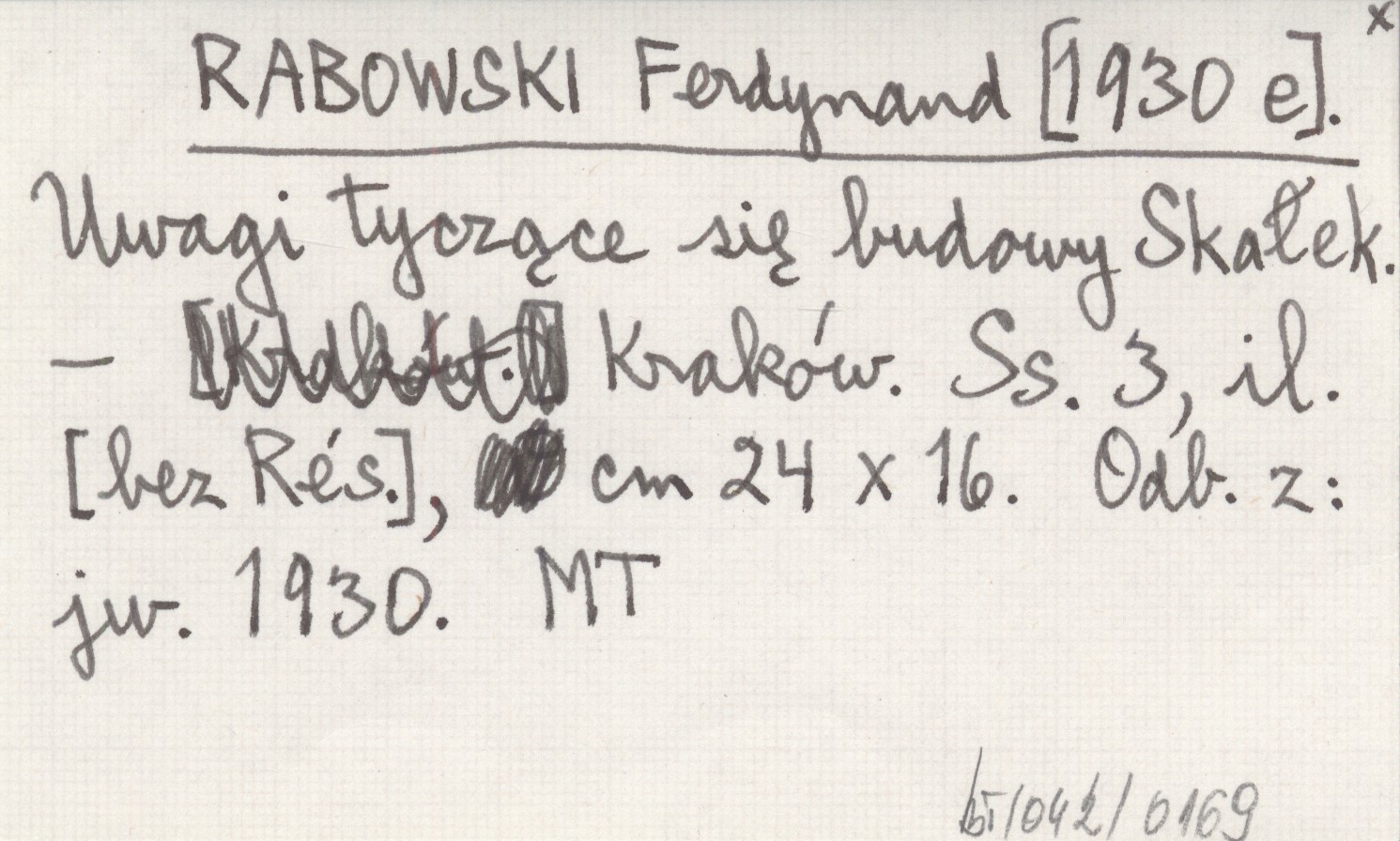 RABOWSKI Ferdynand [1930 e] Uwagi tyczące się budowy Skałek.