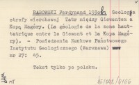 RABOWSKI Ferdynand 1930 b Geologja strefy wierchowej Tatr między Giewontem a Kopą Magóry. (La géologie de la zone hauttatrique entre la Giewont et la Kopa Magóry).