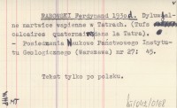 RABOWSKI Ferdynand 1930 d Dyluwjalne martwice wapienne w Tatrach. (Tufs calcaires quaternaires dans la Tatra).