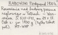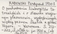 RABOWSKI Ferdynand 1930 f O pochodzeniu limburgitów tatrzańskich i o stosunku wzajemnym płaszczowin, wyodrębnionych między pasmem Skałek a górami Veporu.