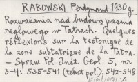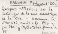 RABOWSKI Ferdynand 1930 i Quelques réflexions sur la tectonique de la zone subtatrique de la Tatra.
