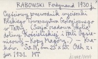 RABOWSKI Ferdynand 1930 j Częściowy przewodnik wycieczki Polskiego Towarzystwa Geologicznego w Tatry. (Sesja osadowa okolic doliny Kościeliskiej, i Hali Gąsienicowej-Kopy Magóry).