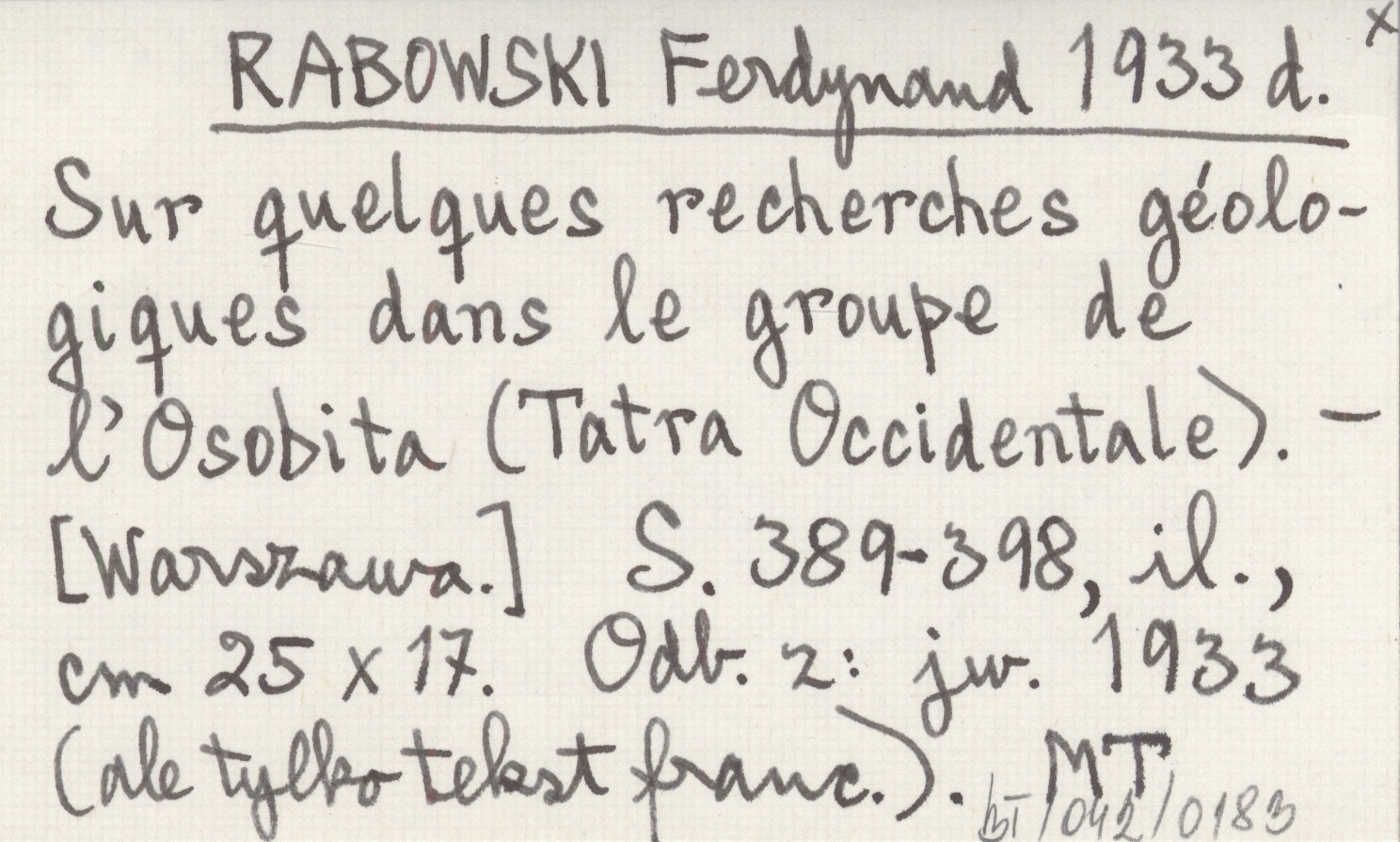 RABOWSKI Ferdynand 1933 d Sur quelques recherches géologiques dans le groupe de l'Osobita (Tatra Occidentale).