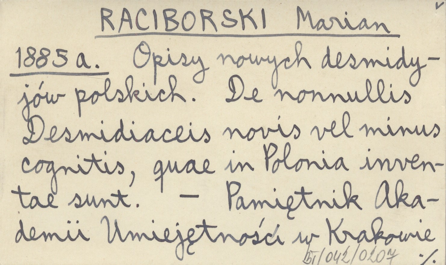 RACIBORSKI Marian 1885 a Opisy nowych desmidyjów polskich. De nonnullis Desmidiaceis novis vel minus cognitis, quae in Polonia inventae sunt.
