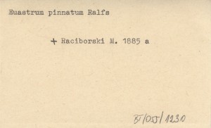 Pamiętnik Akademii Umiejętności w Krakowie, Wydział Matematyczno-Przyrodniczy (Kraków) , 10: [57]-[100], 5 k. Glony. Częściowo po polsku, częściowo po łacinie. REC: GUTWIŃSKI R. 1909