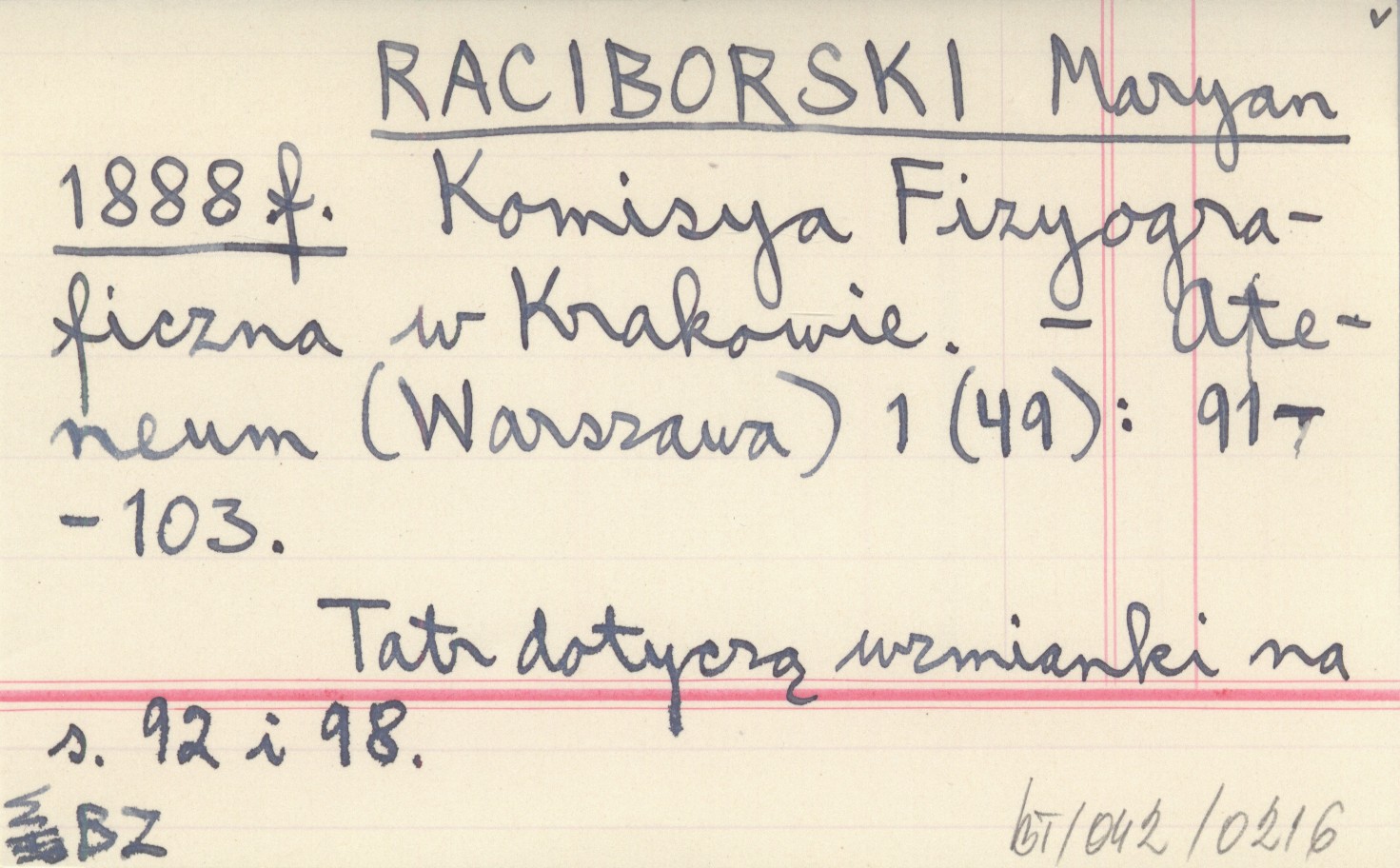 RACIBORSKI Marian 1888 f Komisya Fizyograficzna w Krakowie.