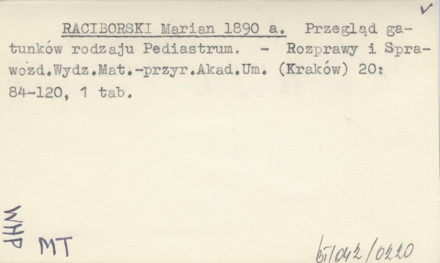 RACIBORSKI Marian 1890 a Przegląd gatunków rodzaju Pediastrum.
