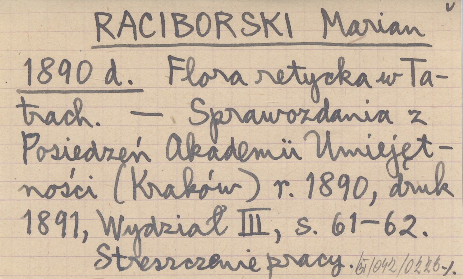Sprawozdania z Posiedzeń Akademii Umiejętności (Kraków) , R. 1890, druk 1891, Wydział III: 61-62. Streszczenie pracy.