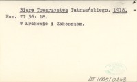 Biuro Sekcyi turystycznej Towarzystwa Tatrzańskiego. 1909