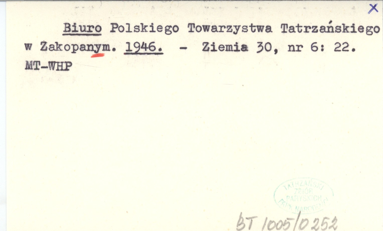 Biuro Polskiego Towarzystwa Tatrzańskiego w Zakopanem. 1946