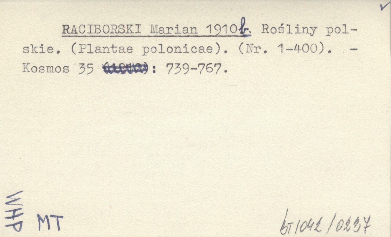 RACIBORSKI Marian 1910 b Rośliny polskie. (Plantae polonicae). (Nr. 1-400).
