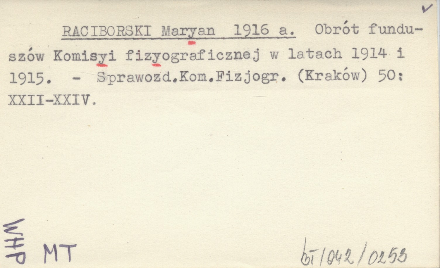 RACIBORSKI Maryan 1916 a Obrót funduszów Komisyi fizyograficznej w latach 1914 i 1915.