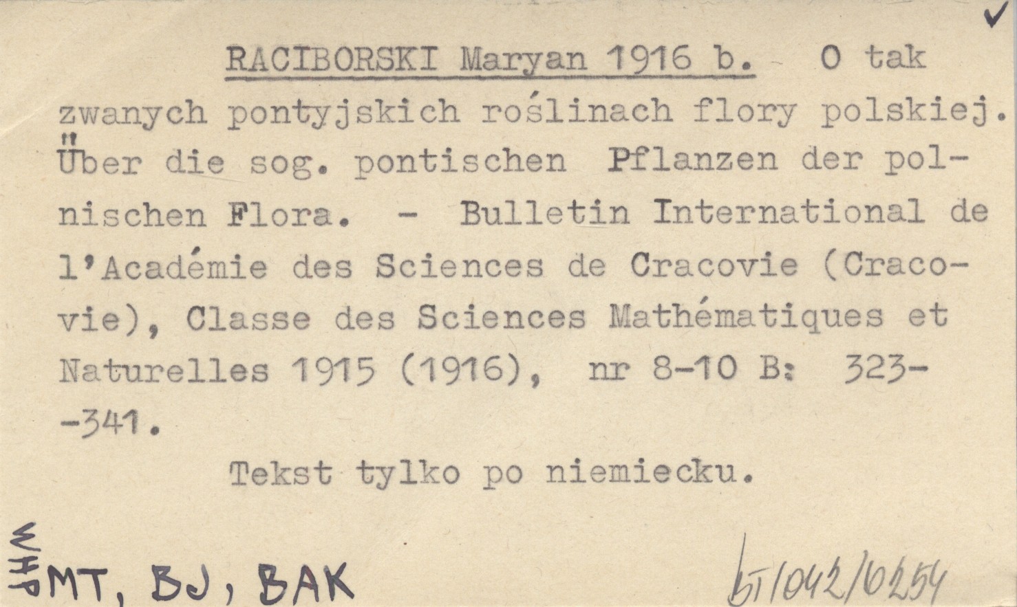 RACIBORSKI Maryan 1916 b O tak zwanych pontyjskich roślinach flory polskiej. Über die sog. pontischen Pflanzen der polnischen Flora.