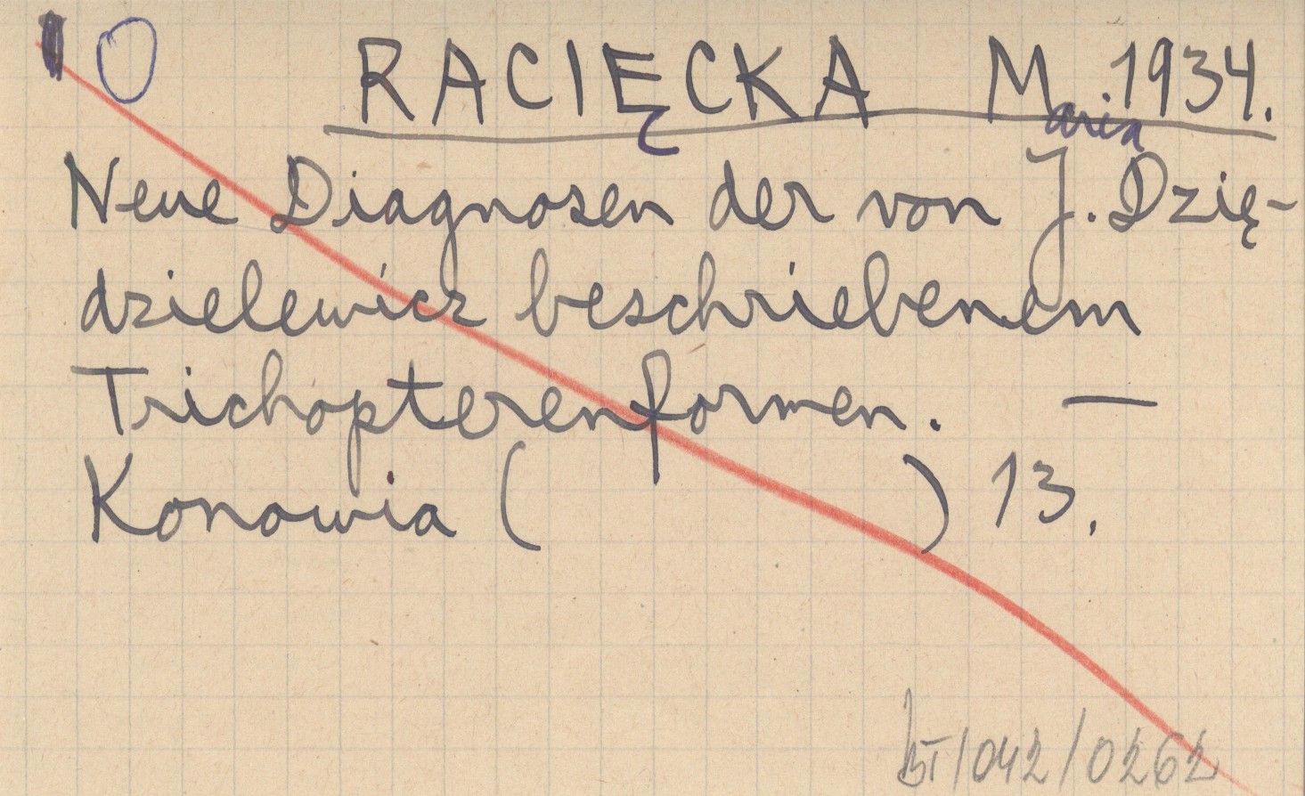 RACIĘCKA Maria 1934 Neue Diagnosen der von J. Dziędzielewicz beschriebenem Tichopterenformen.