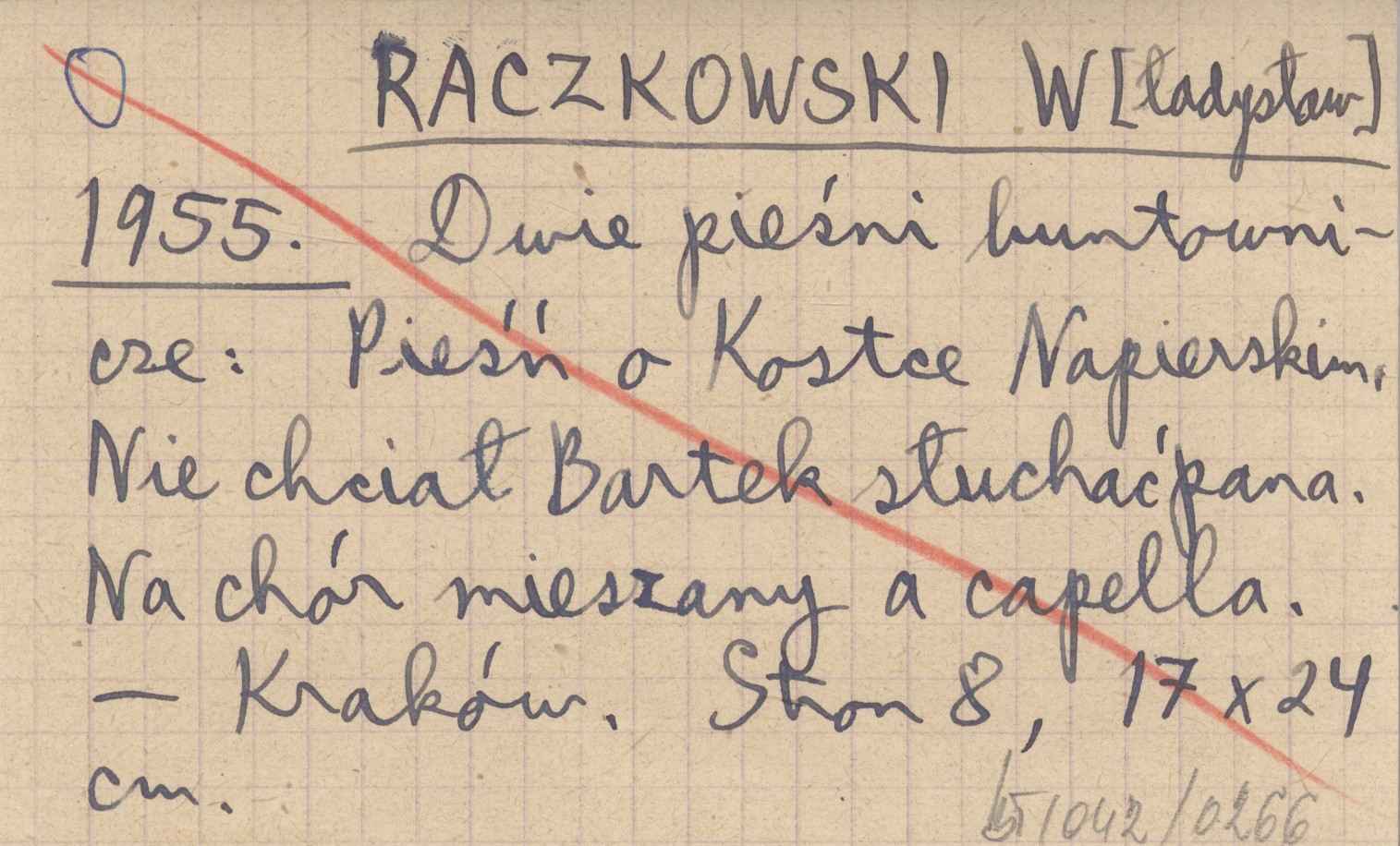 RACZKOWSKI W[ładysław] 1955 Dwie pieśni buntownicze: Pieśń o Kostce Napierskim. Nie chciał Bartek słuchać pana. Na chór mieszany a capella.