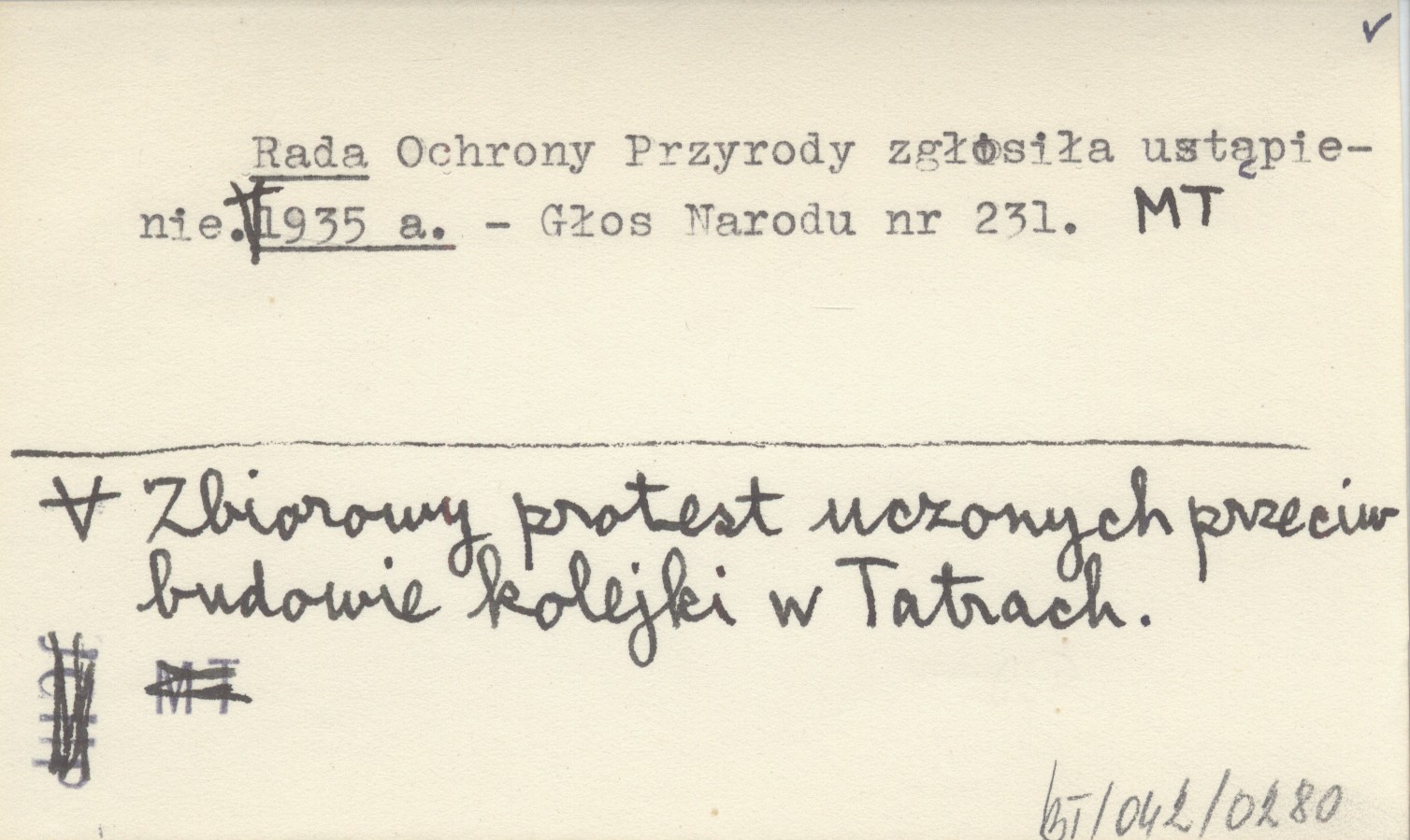 Rada Ochrony Przyrody zgłosiła ustąpienie. Zbiorowy protest uczonych przeciw budowie kolejki w Tatrach. 1935 a