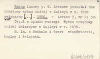 Radca lasowy p. G. Lettner przysłał [...] wykaz ubitej w Galicyi w r. 1877 zwierzyny. 1878