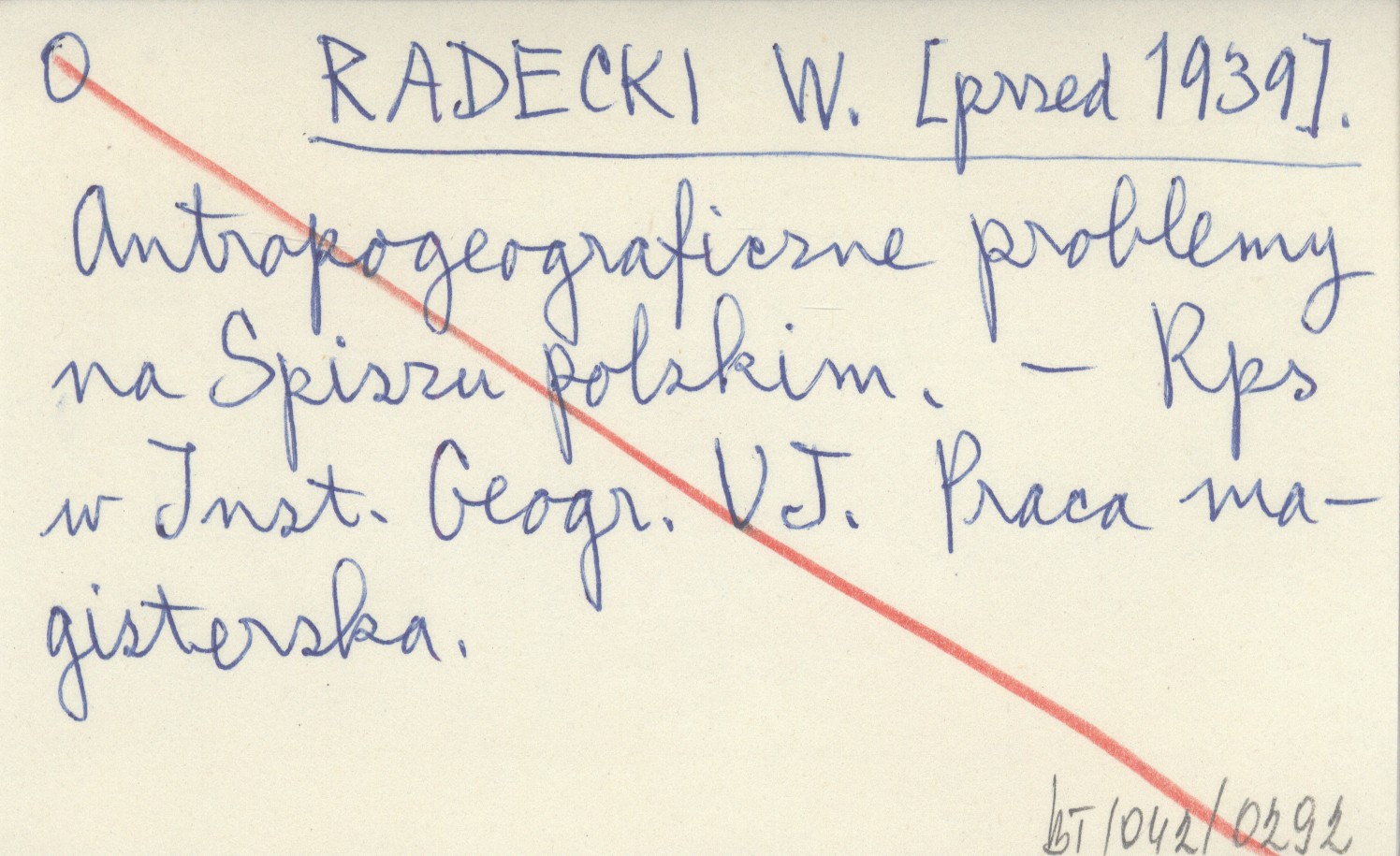 RADECKI W. [przed 1939] Antropogeograficzne problemy na Spiszu polskim.