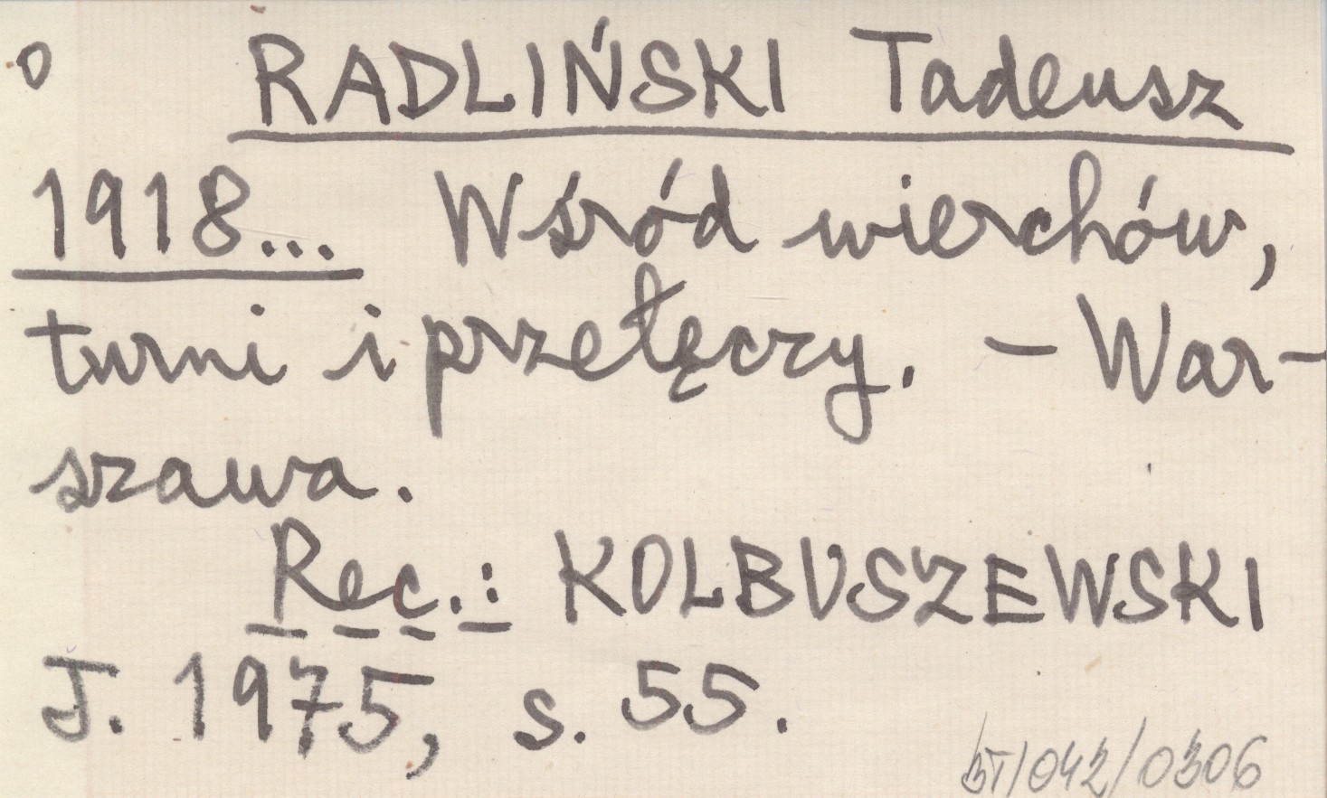 RADLIŃSKI Tadeusz 1918... Wśród wierchów, turni i przełęczy.