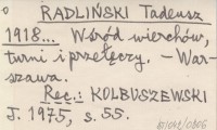 Warszawa , REC: KOLBUSZEWSKI J. 1975: 55 ; ŚWIERZ M. 1922 o ;