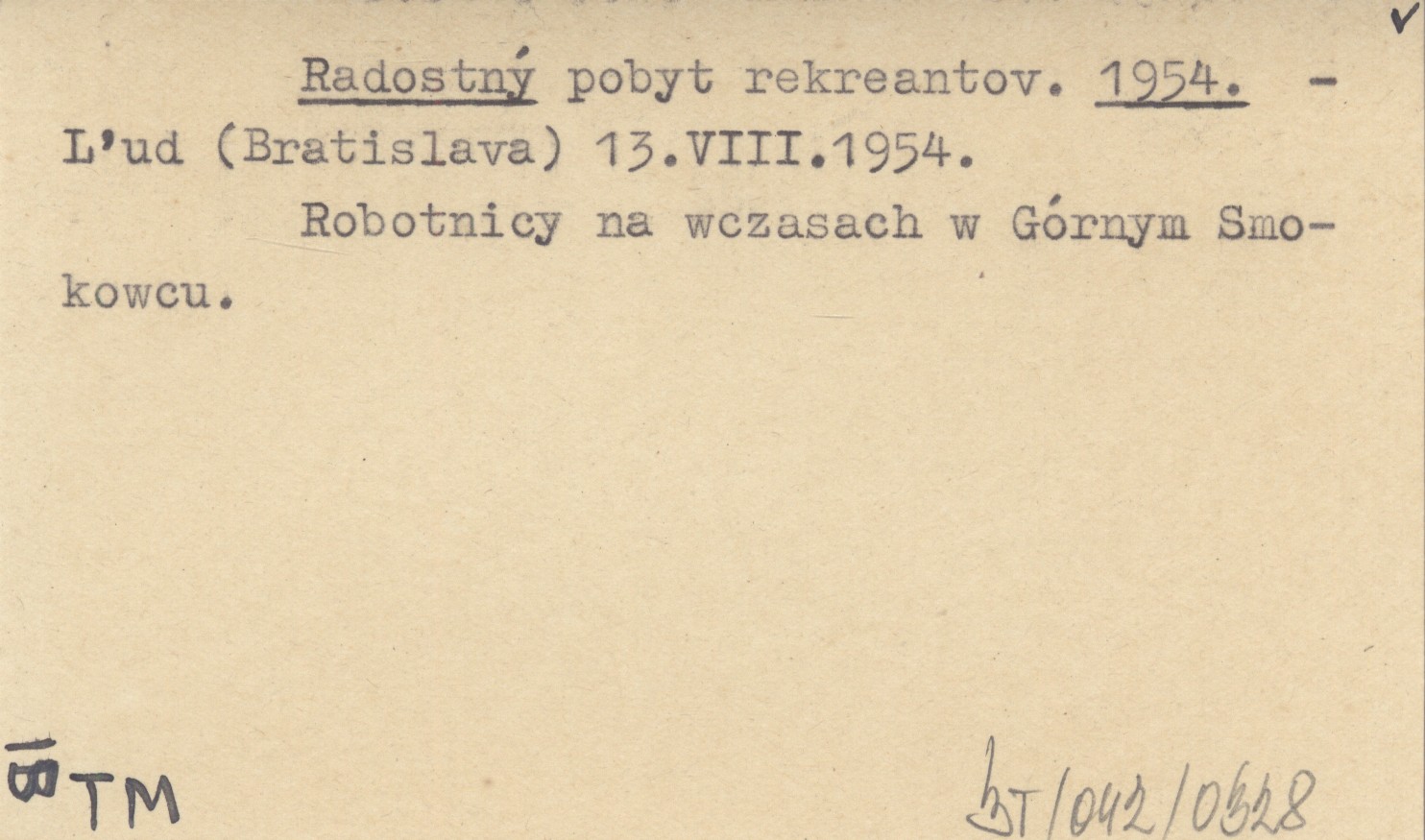 Ľud (Bratislava) , 13 VIII 1954. Robotnicy na wczasach w Górnym Smokowcu.
