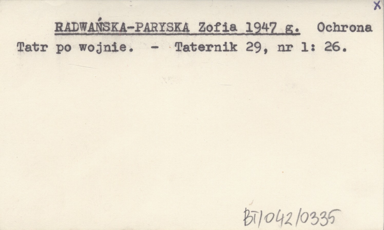 RADWAŃSKA-PARYSKA Zofia 1947 g Ochrona Tatr po wojnie.