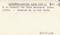 RADWAŃSKA-PARYSKA Zofia 1947 l [Rec. o:] V. A. Firsoff: The Tatra Mountains. London 1942.