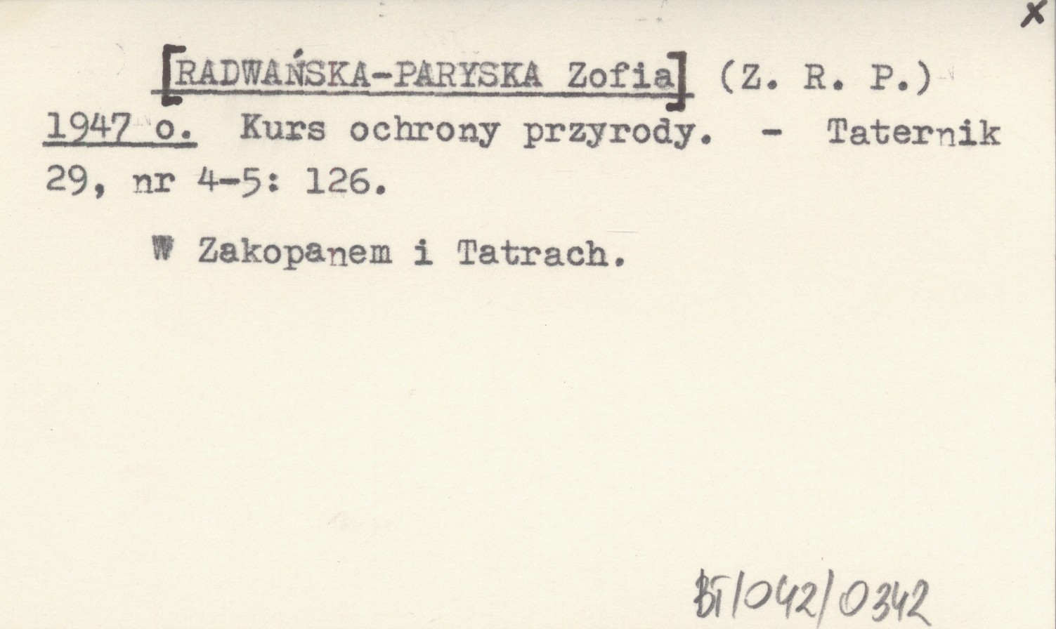 (Z. R. P.) [RADWAŃSKA-PARYSKA Zofia] 1947 o Kurs ochrony przyrody.