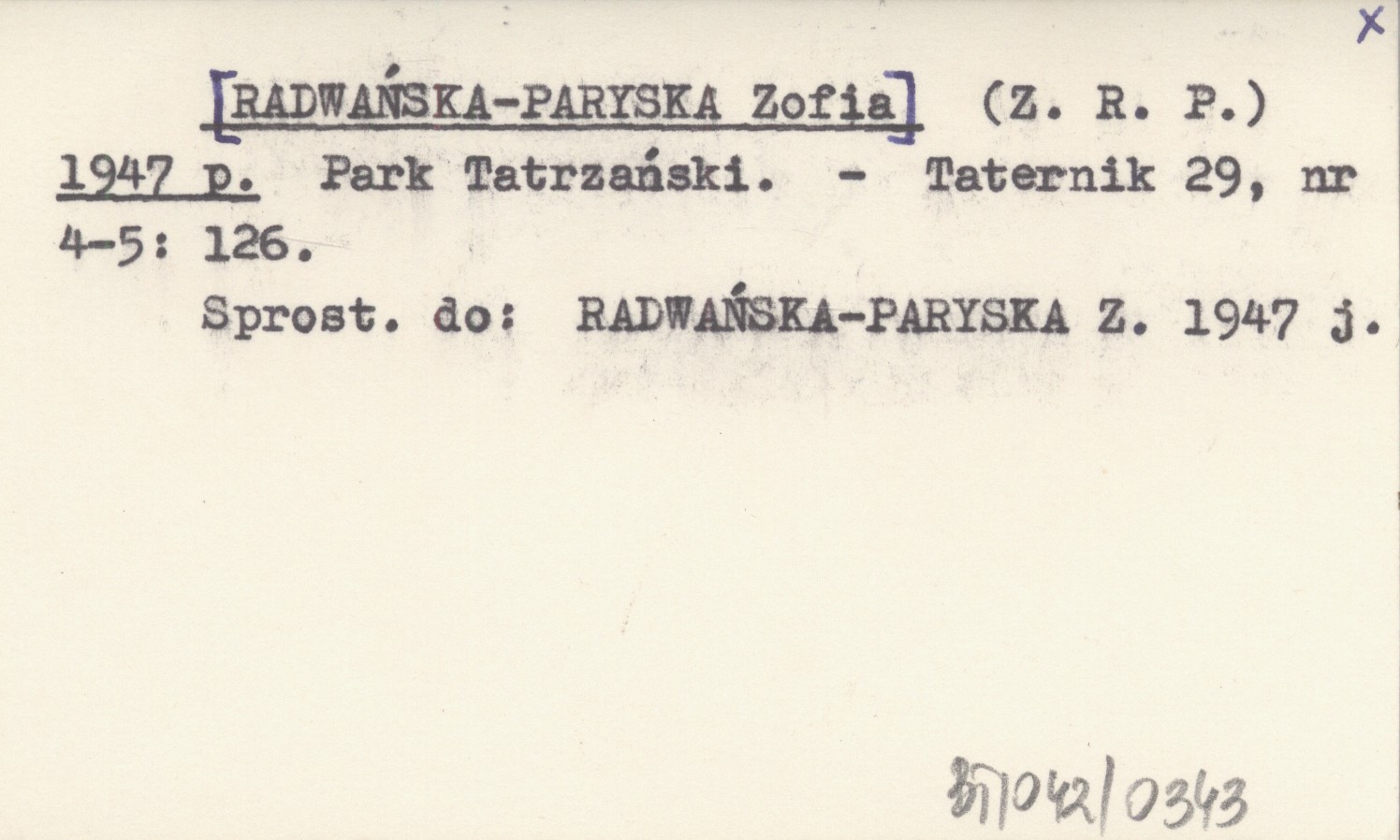 Taternik, 29, nr 4-5: 126. Sprostowanie do: RADWAŃSKA-PARYSKA Z. 1947 j