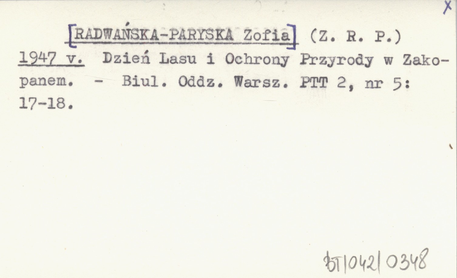 (Z. R. P.) [RADWAŃSKA-PARYSKA Zofia] 1947 v Dzień Lasu i Ochrony Przyrody w Zakopanem.