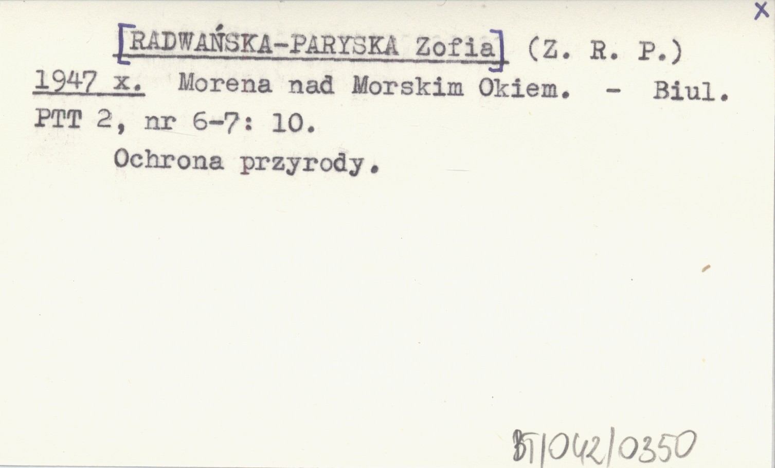 (Z. R. P.) [RADWAŃSKA-PARYSKA Zofia] 1947 x Morena nad Morskim Okiem.