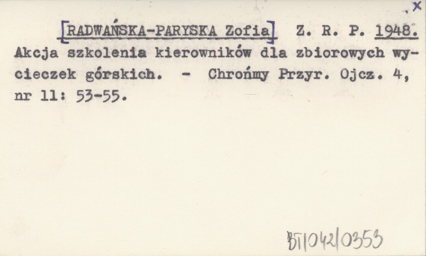 Z. R. P. [RADWAŃSKA-PARYSKA Zofia] 1948 Akcja szkolenia kierowników dla zbiorowych wycieczek górskich.