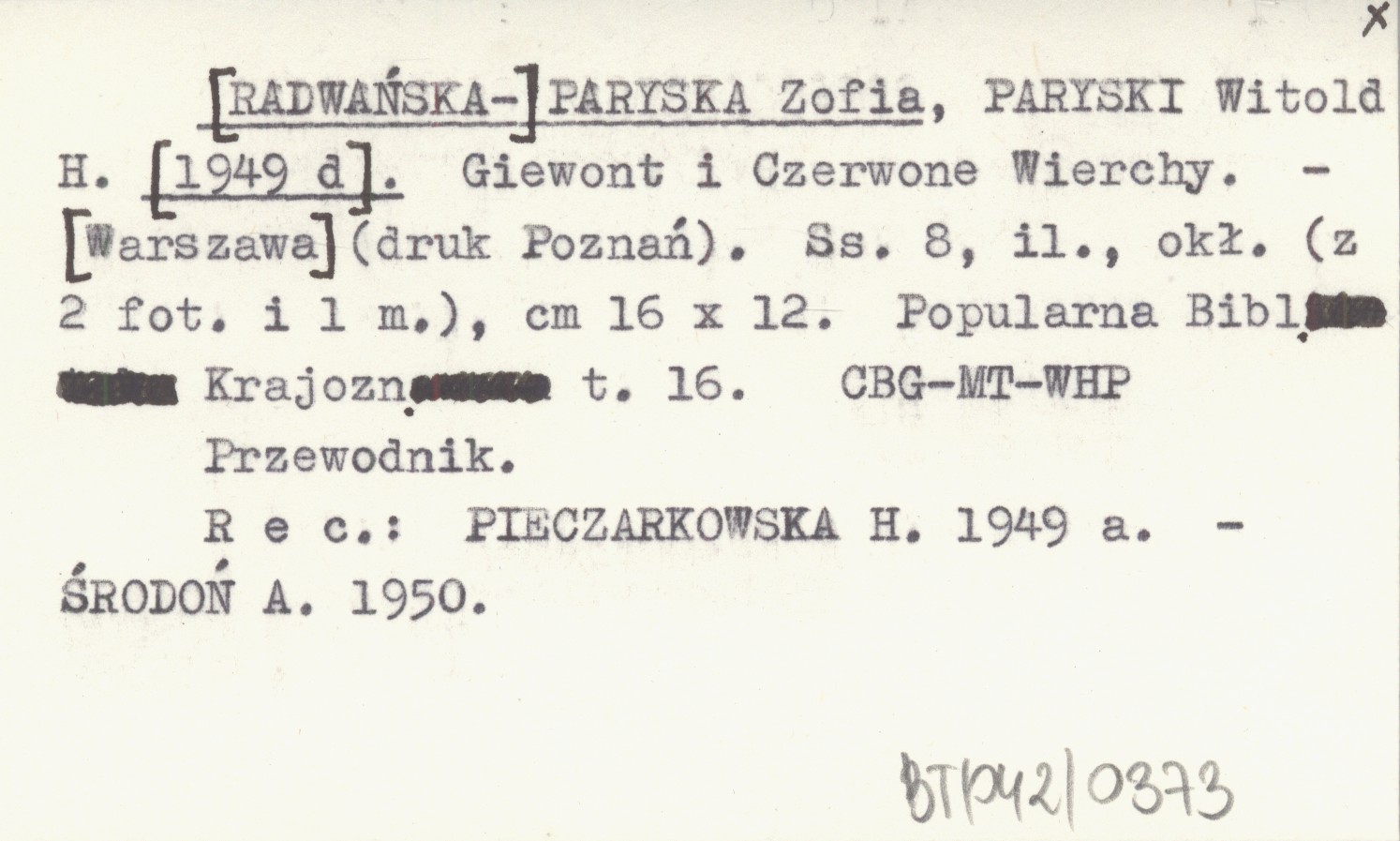 [RADWAŃSKA-]PARYSKA Zofia PARYSKI, Witold H. ; 1949 d Giewont i Czerwone Wierchy.