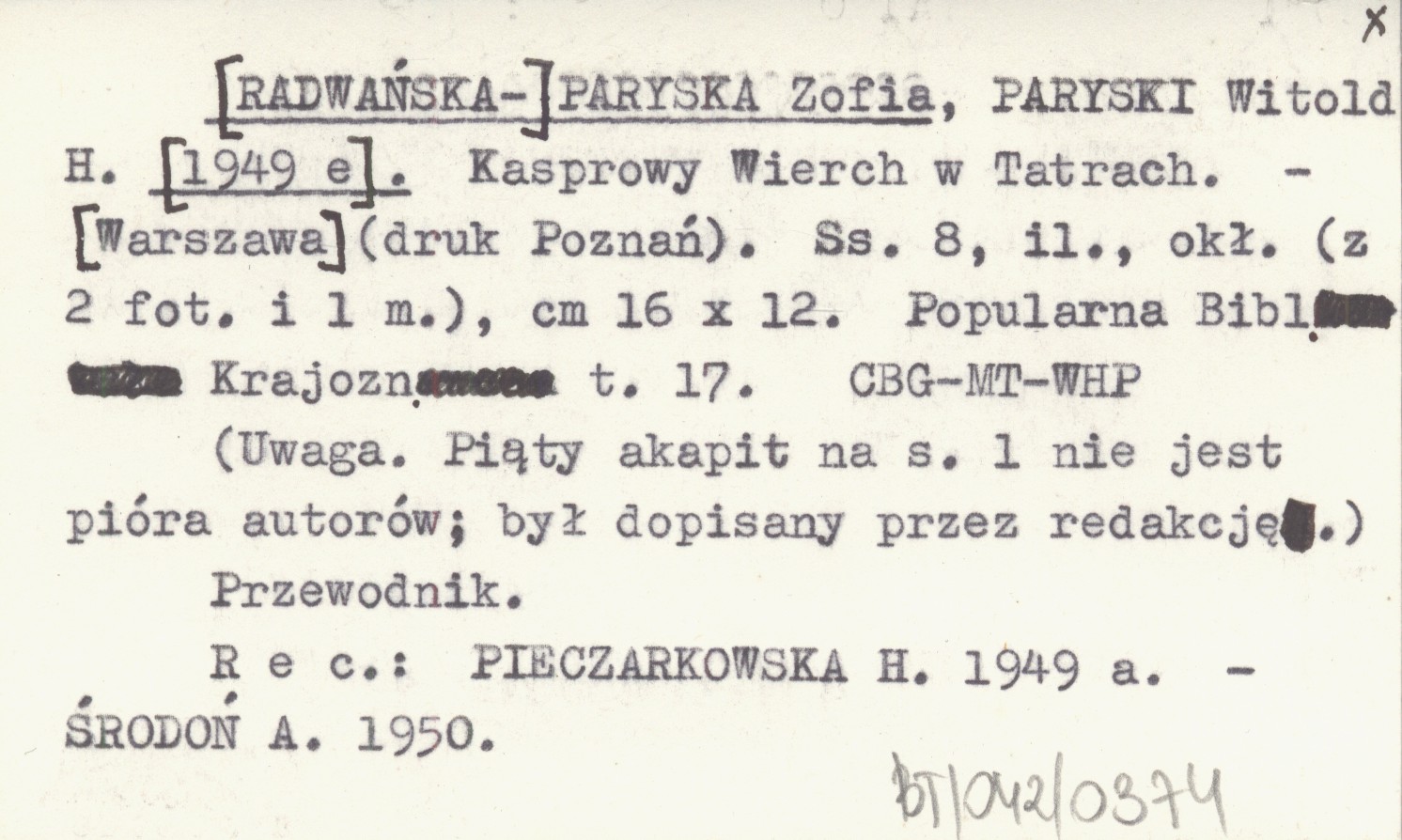 [RADWAŃSKA-]PARYSKA Zofia PARYSKI, Witold H. ; 1949 e Kasprowy Wierch w Tatrach.