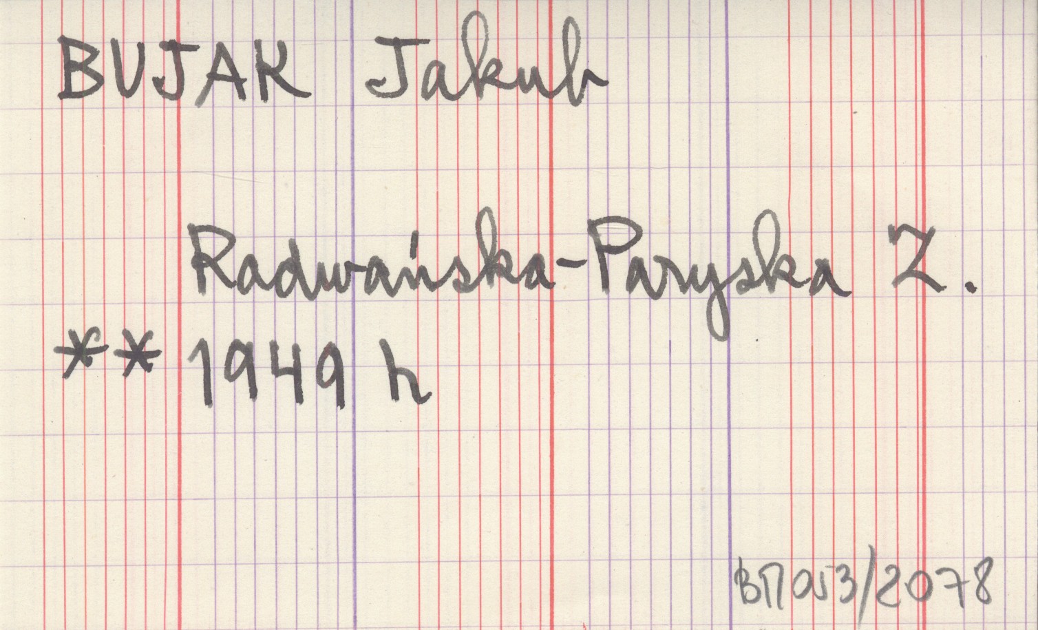 RADWAŃSKA-PARYSKA Zofia 1949 h Wspomnienie o Jakubie Bujaku.