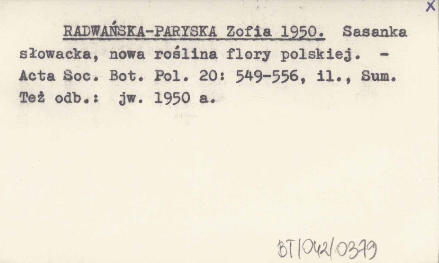 RADWAŃSKA-PARYSKA Zofia 1950 Sasanka słowacka, nowa roślina flory polskiej.