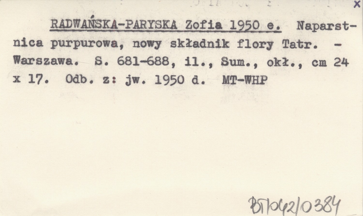 RADWAŃSKA-PARYSKA Zofia 1950 e Naparstnica purpurowa, nowy składnik flory Tatr.