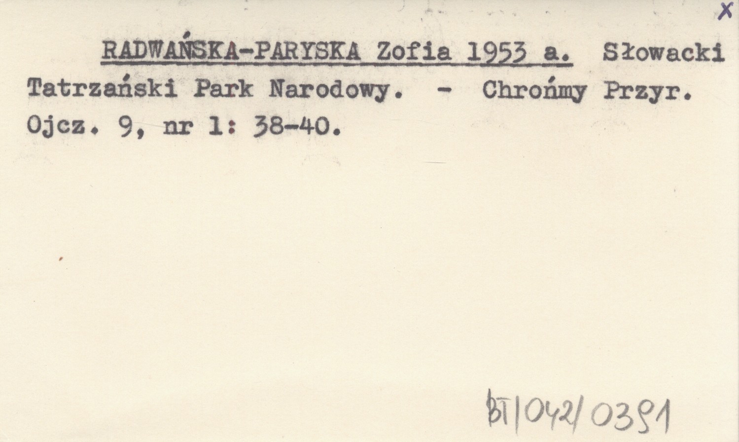 RADWAŃSKA-PARYSKA Zofia 1953 a Słowacki Tatrzański Park Narodowy.