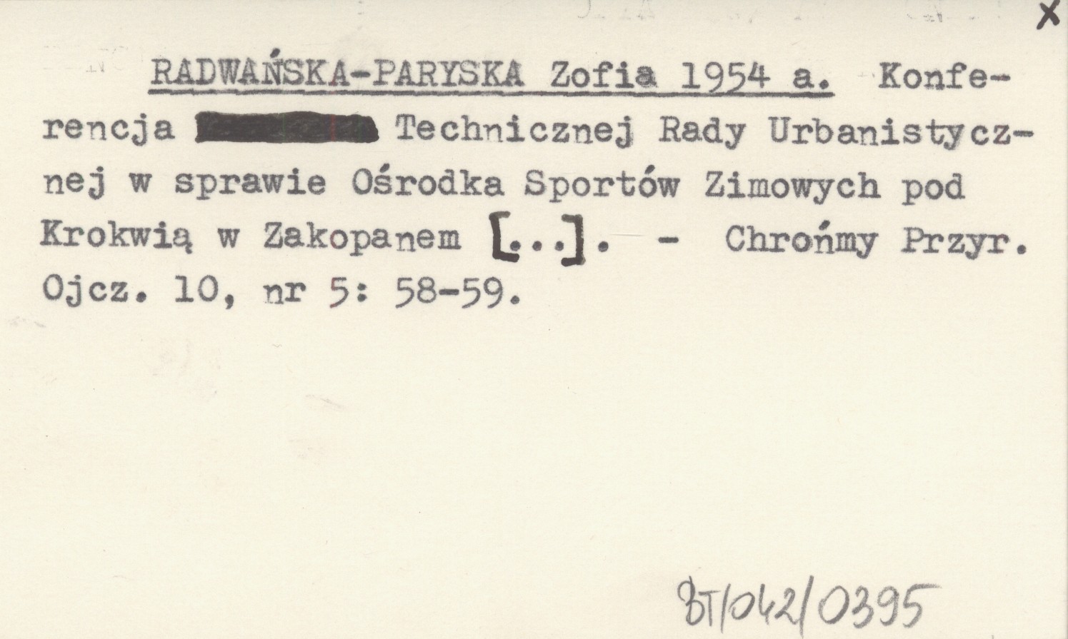 RADWAŃSKA-PARYSKA Zofia 1954 a Konferencja Technicznej Rady Urbanistycznej w sprawie Ośrodka Sportów Zimowych pod Krokwią w Zakopanem [...].