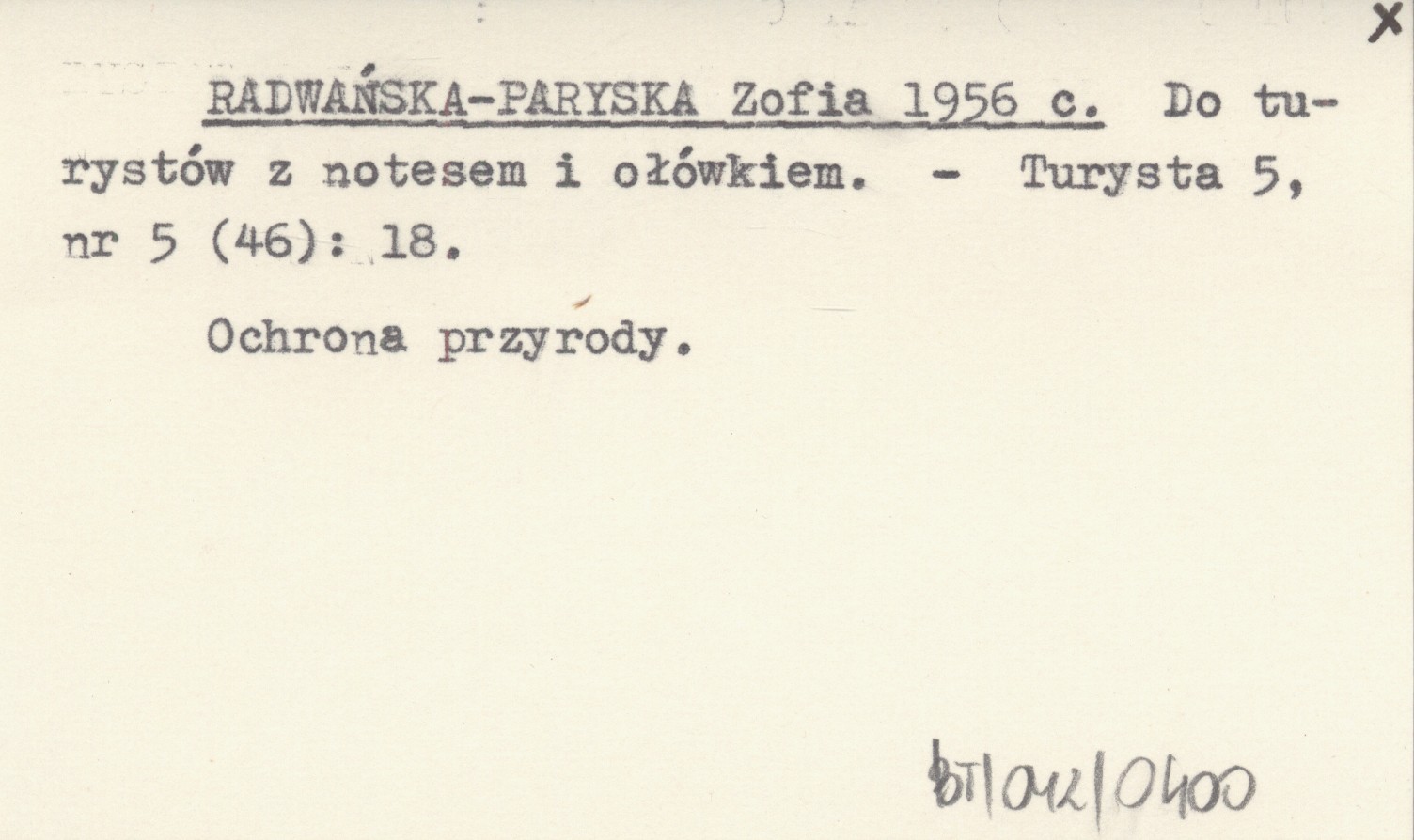 RADWAŃSKA-PARYSKA Zofia 1956 c Do turystów z notesem i ołówkiem.