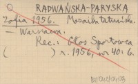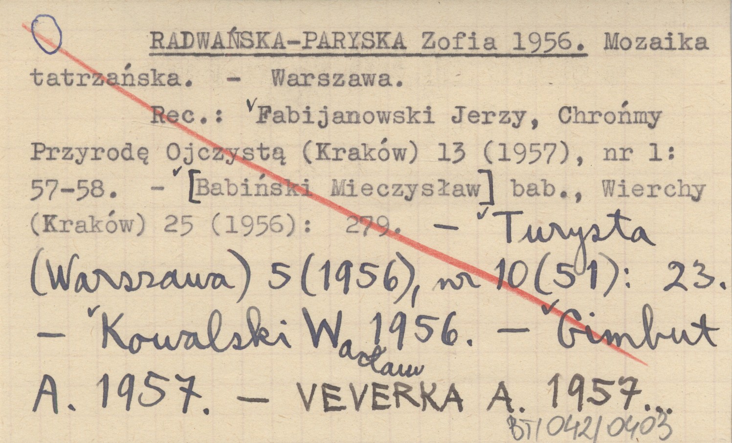 Warszawa , REC: NOVÁK F. A. 1957 ; Głos Sportowca 1956, nr 40: 6 ; FABIJANOWSKI Jerzy, Chrońmy Przyrodę Ojczystą (Kraków) 13 (1957), nr 1: 57-58 ; [BABIŃSKI Mieczysław] bab., Wierchy (Kraków) 25 (1956): 279 ; Turysta (Warszawa) 5 (1956), nr 10 (51): 23 ; KOWALSKI Wacław 1956 ; GIMBUT A. 1957 ; VEVERKA A. 1957... ; [SZCZEPAŃSKI Jan Alfred] s, Trybuna Ludu (Warszawa) 10, nr 21 (23 I 1957): 6 ; FRASIK J. A. 1957 a ; PARYSKI W. H. 1957 a, d ; Poznaj Świat (Warszawa) 4 (1956), nr 12: 46 ;
