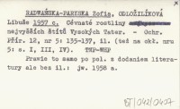 RADWAŃSKA-PARYSKA Zofia ODLOŽILÍKOVÁ, Libuše. ; 1957 c Cévnaté rostliny najvyšších štítů.