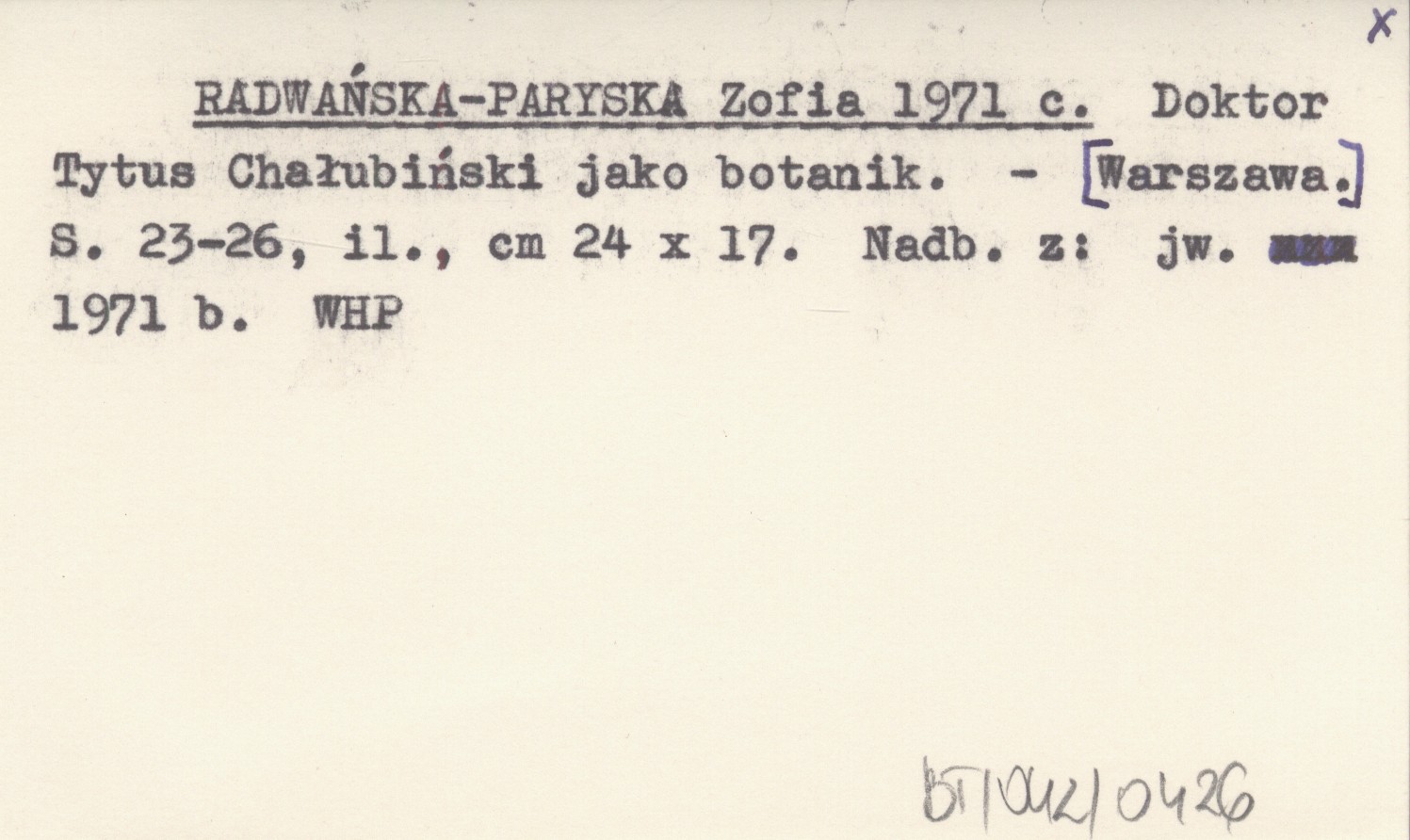 RADWAŃSKA-PARYSKA Zofia 1971 c Doktor Tytus Chałubiński jako botanik.