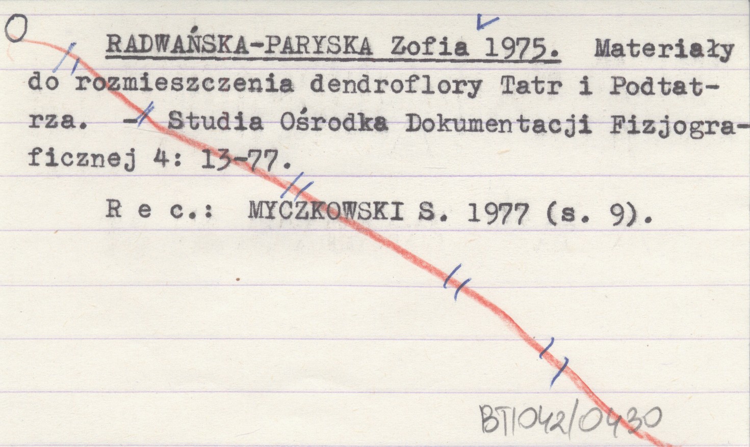 RADWAŃSKA-PARYSKA Zofia 1975 Materiały do rozmieszczenia dendroflory Tatr i Podtatrza.