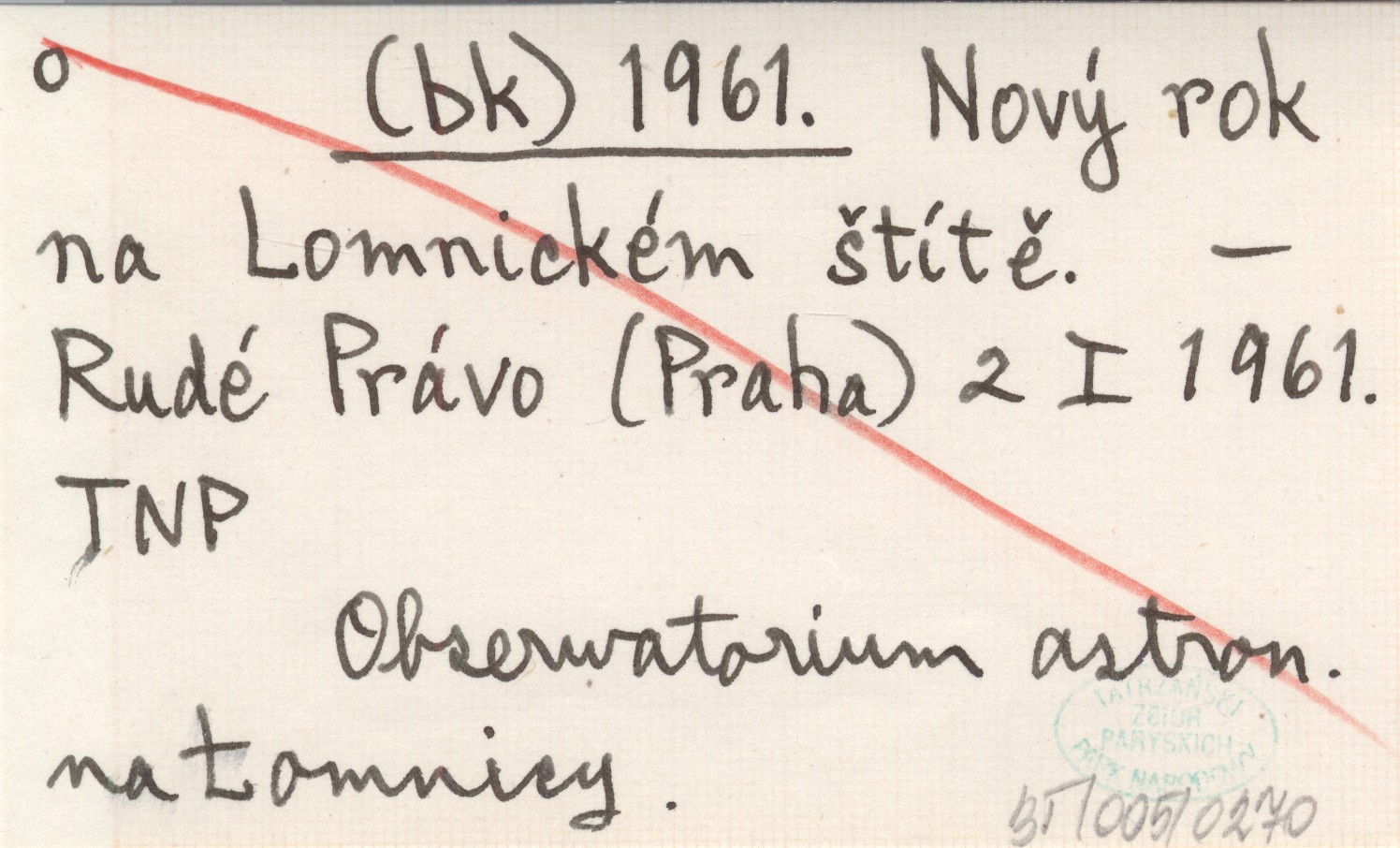 Rudé Právo (Praha) , 2 I 1961. Obserwatorium astron. na Łomnicy.