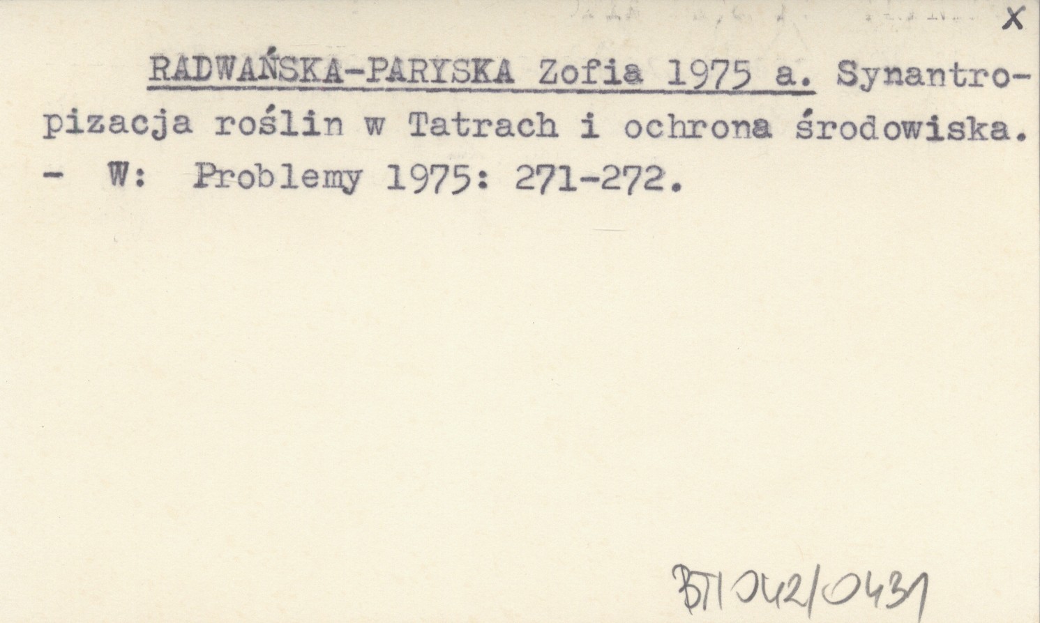 RADWAŃSKA-PARYSKA Zofia 1975 a Synantropizacja roślin w Tatrach i ochrona środowiska.