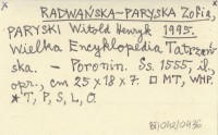 RADWAŃSKA-PARYSKA Zofia PARYSKI, Witold Henryk. ; 1995 Wielka Encyklopedia Tatrzańska.